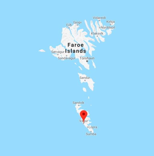 The town of Vágur is on the island of Suðuroy, the southernmost island of the Faroe Islands.